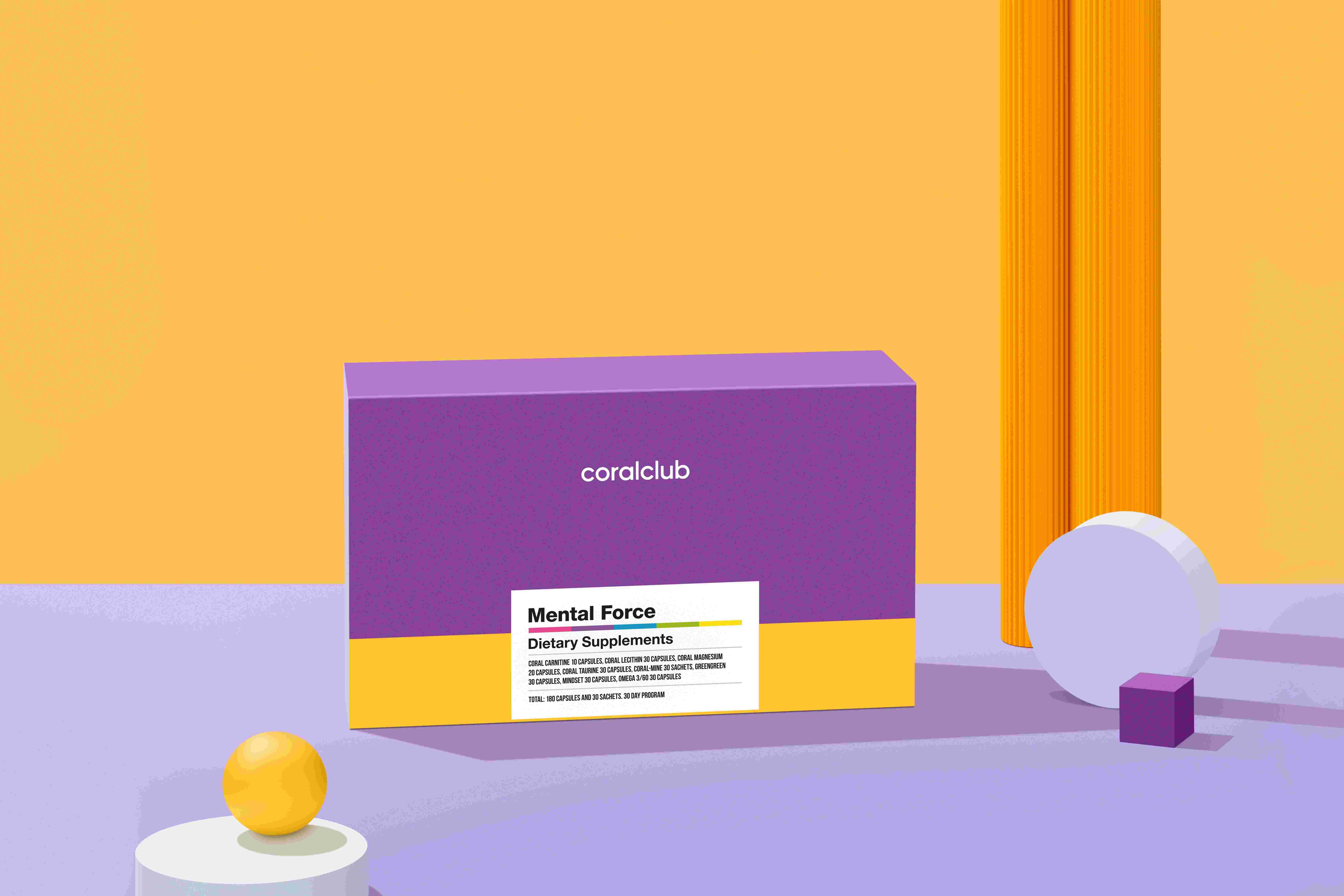Memo-Prime (30 capsules), Coral Carnitine (10 capsules), Coral Lecithin (30 capsules), Coral Magnesium (20 capsules), Coral Taurine (30 capsules), Omega 3/60 (30 capsules), GreenGreen (30 capsules), Coral-Mine (30 sashets)